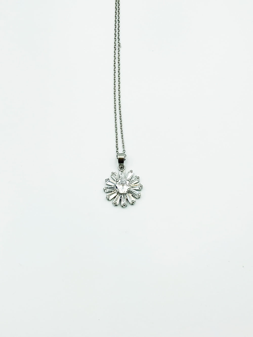 Ατσάλινο κολιέ – αλυσίδα , με μοτίφ λουλούδι με κρύσταλλα.