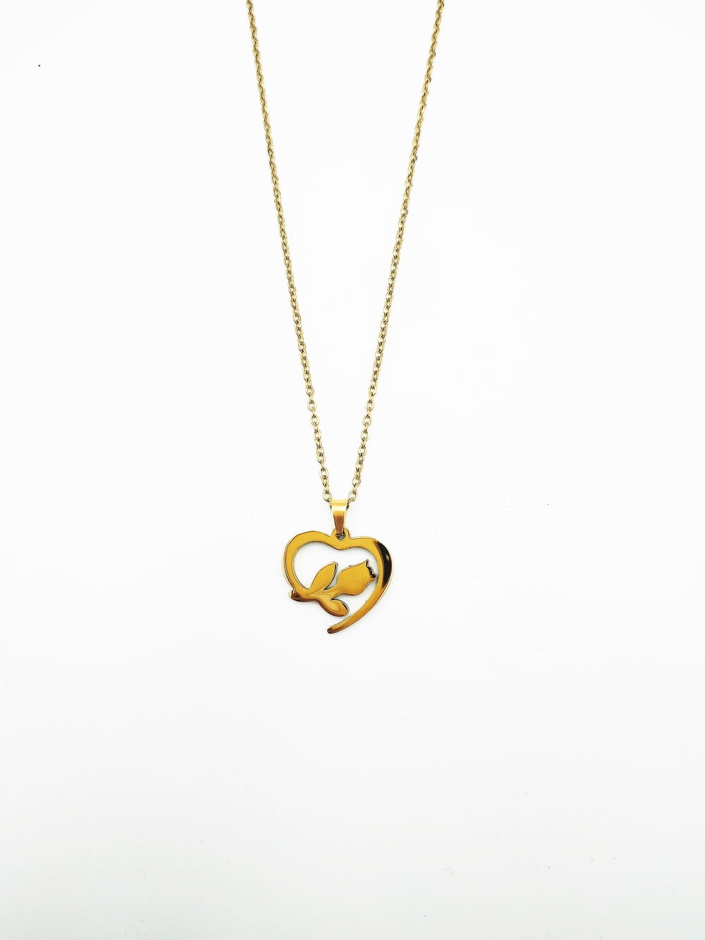 Επίχρυσο Κολιέ Ατσάλι με Καρδιά & Λουλούδι quantity