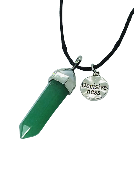 Κολιέ Αβεντουρίνη με κερωμένο κορδόνι και Decisiveness Ετικέτα.