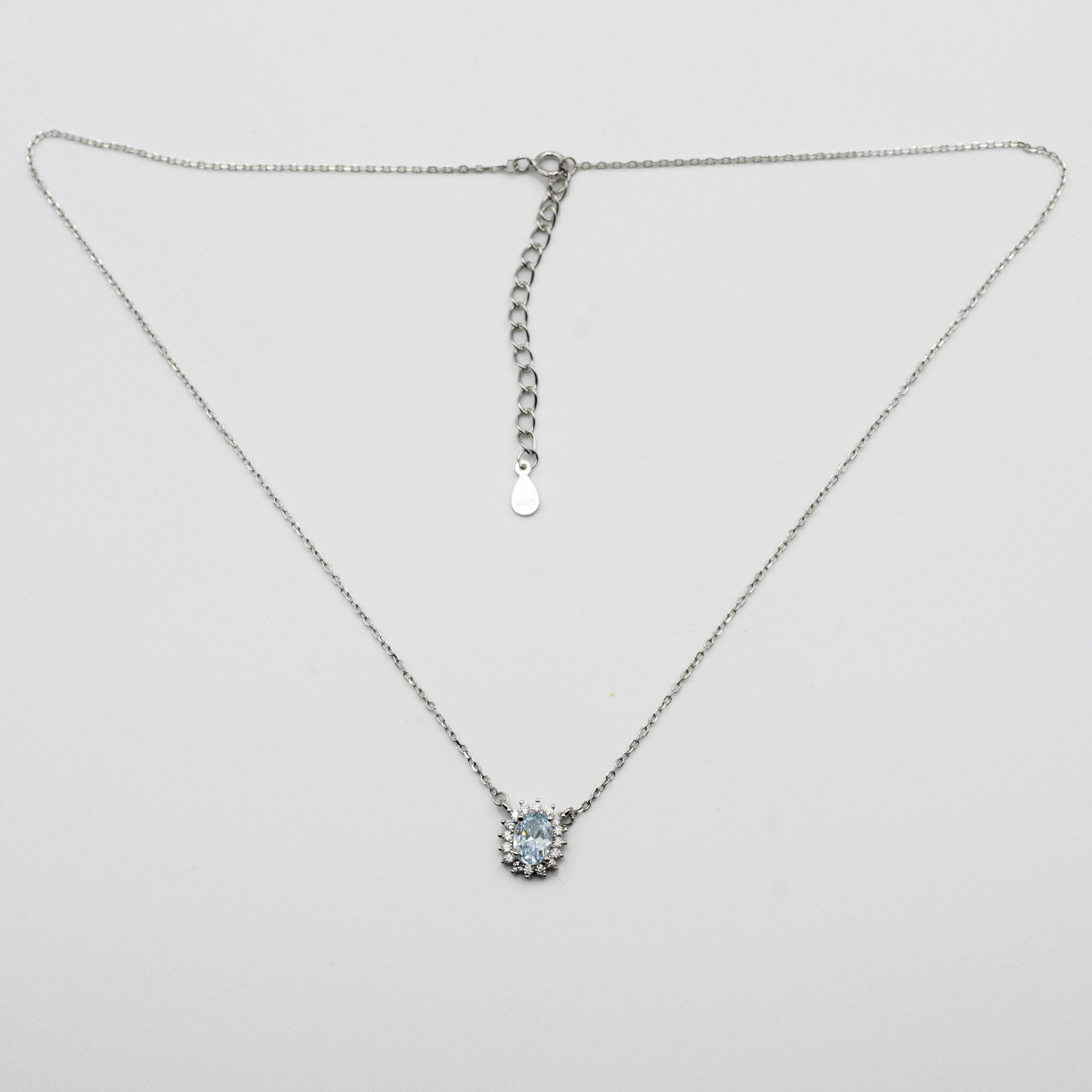 Ασημένιο κολιέ αλυσίδα με σιελ ζιργκόν ροζέτα. Διάσταση αλυσίδας 40 cm & 5cm επέκταση.