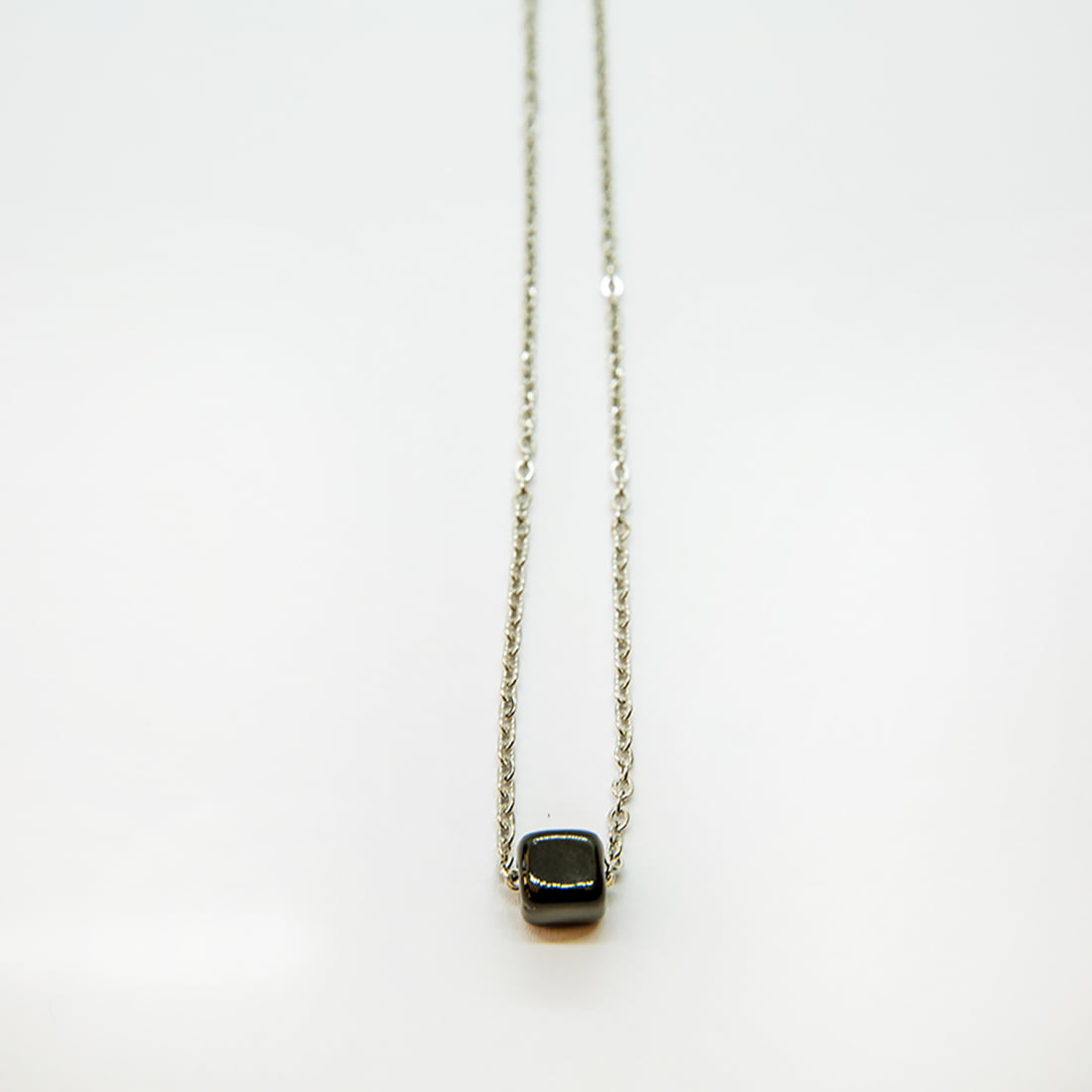 Μαύρος Κεραμικός Κύβος με Ατσάλινη Αλυσίδα.